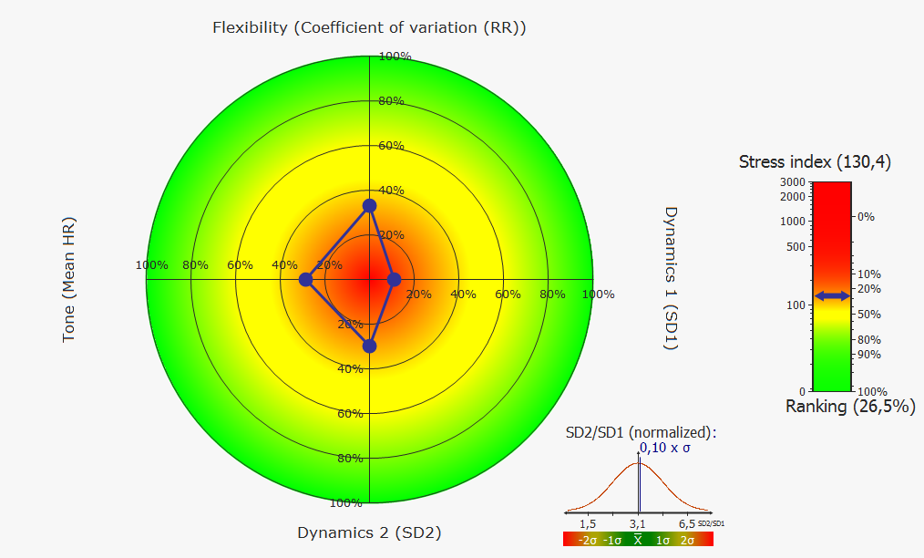 Klient podľa typu testu sedí, leží, alebo funguje v rámci bežného dňa a pomocou kolíčkových elektród na končatinách, alebo nalepovacích elektród na hrudníku sa sníma EKG záznam (záznam elektrickej aktivity srdca). Následne softvér záznam vyhodnotí a toto vyhodnotenie interpretuje lekár/psychológ v súlade s informáciami získanými od klienta v rámci anamnézy.